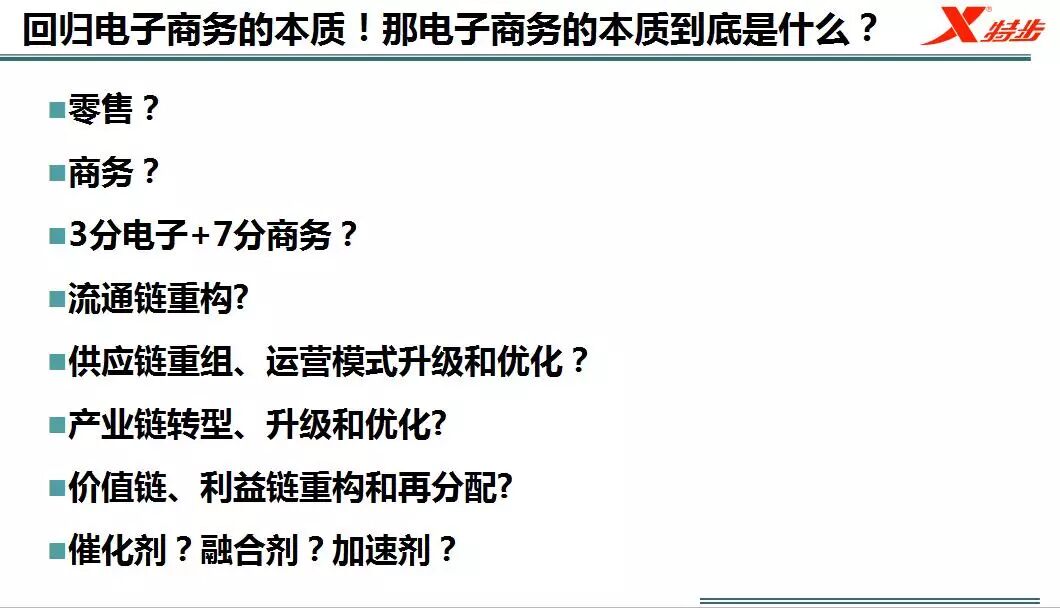 电子商务的本质是什么?有人说电商的本质是零售,我说那不只是零售,有人说商务,也不只是商务,是三分电子、七分商务?可能还不止,可能会是产业链、价值链的重构?