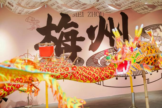 开业期间,梅州天虹购物中心联合梅县博物馆推出“客家非遗艺术展”,通过文物展陈与非遗传习结合,为顾客打造沉浸式文化体验。展览设置百家姓灯笼区、客家饮食区、非遗席狮区、民国服装区、丰顺浦寨火龙区五大主题板块,并联动丰顺浦寨火龙手艺人共同呈现,每日开设非遗课堂,邀请手艺人讲解、现场教学。现场另设扎染、竹编主题立体橱窗,以更直观的方式传递非遗技艺魅力。