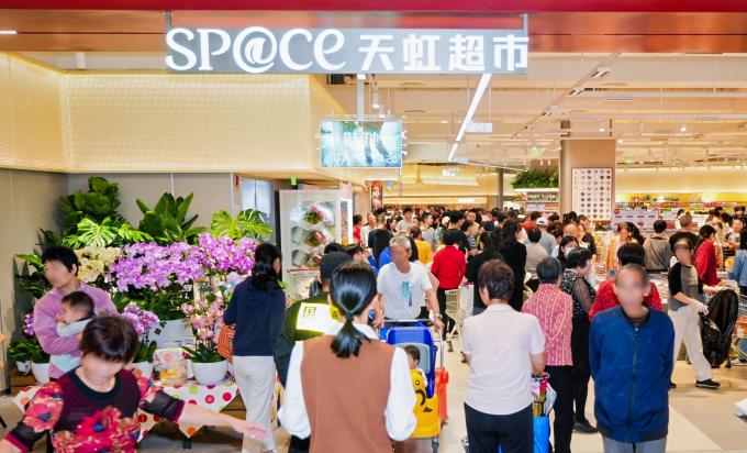 在商品方面,sp@ce3.0梅州店聚焦绿色健康可持续、好物不贵、小份经济、在地化等特色。其中,12类健康标签体系首次引入梅州,涵盖配料干净、有机、控糖等多维度,上架1200余种健康标签商品;1000余款"好物不贵"的商品长期低价,减少决策成本;针对小家庭与单身客群,提供精分割鲜肉、小包装油米调味等多品类小份商品。此外,现场设立熟化专区,顾客可现选生蚝等鲜活海产以及豉油鸡等现场加工享用,为顾客提供"即选、即做、即食"的便捷服务。为深度融合客家文化元素,sp@ce3.0梅州店烟火集市在现制包点、香酥鸭等南北风味基础上,推出盐焗鸡等本土化熟食,同时引入桃尧沙田柚、客家娘酒等本地特色风物。