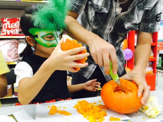 “万圣节到了,小朋友们都对‘Trick or Treat’的活动感兴趣,所以家乐福就给大家提供一个可以放肆捣蛋的机会,狂欢一把。”家乐福活动负责人笑着解释:“用一场迷你游园会来进行异国文化的传播,既能达到教育的目的,也能享受一把万圣节的氛围,可谓一举两得。”